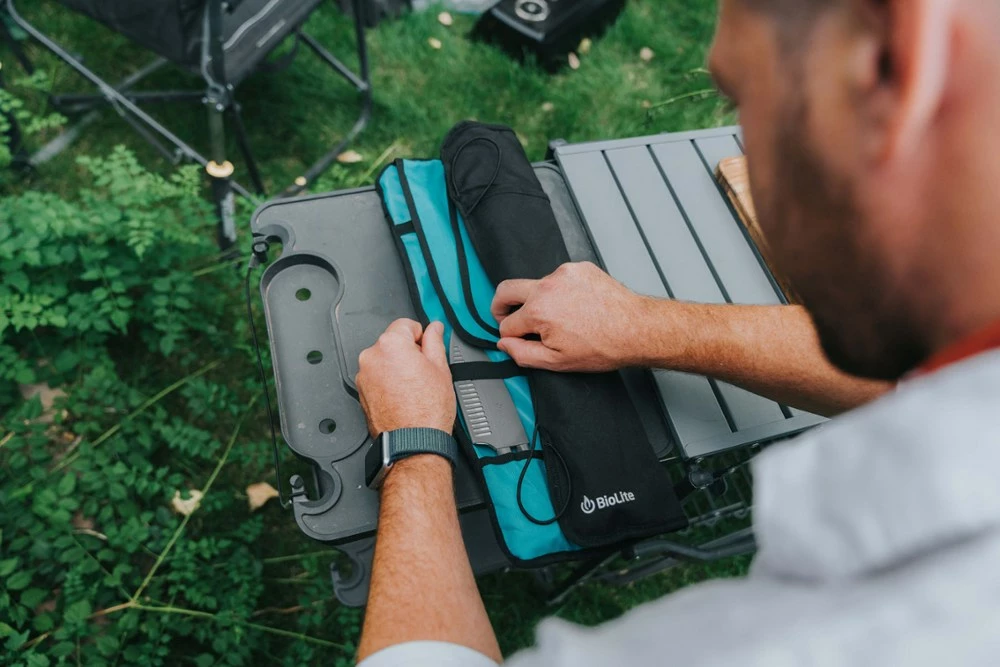 This utensil roll ensures you’ll always be ready to cook with fire. Even better, the BioLite FirePit Prep and Grill Tool Kit rolls up and fits in the burn chamber of your own FirePit for easy storage.