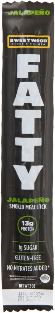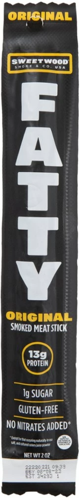The small-batch Sweetwood Fatty meat stick is made with USA grass-fed beef and antibiotic-free pork and all-natural ingredients, making it a tasty treat on any adventure.